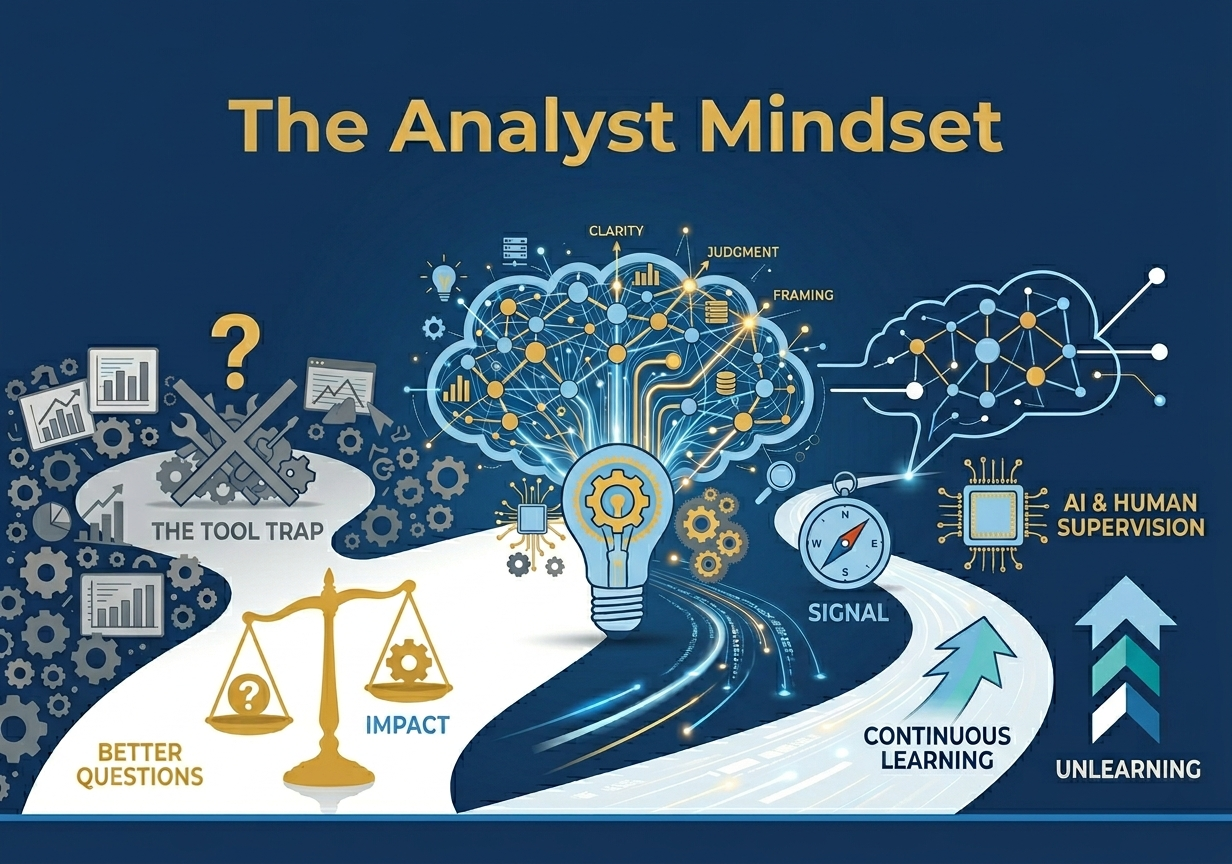 Σε γρήγορα μεταβαλλόμενους τομείς, πολλοί επαγγελματίες αγχώνονται για το να συμβαδίζουν. Νέα εργαλεία φτάνουν, νέες προσδοκίες αναδύονται, και νέα πρότυπα διαφημίζονται συνεχώς. Αλλά οι ανθεκτικοί αναλυτές δεν χτίζουν την ταυτότητά τους γύρω από μια τεχνολογική στοίβα. Την χτίζουν γύρω από τη δημιουργία αξίας. Μαθαίνουν γρήγορα, ναι, αλλά μαθαίνουν από ισχυρά θεμέλια. Επιλέγουν το κατάλληλο εργαλείο για τη δουλειά, όχι το πιο μοδάτο. Δεν ντρέπονται για απλά, αξιόπιστα εργαλεία όταν αυτά αποτελούν τη γρηγορότερη, πιο σαφή και πιο αξιόπιστη διαδρομή προς μια απόφαση.